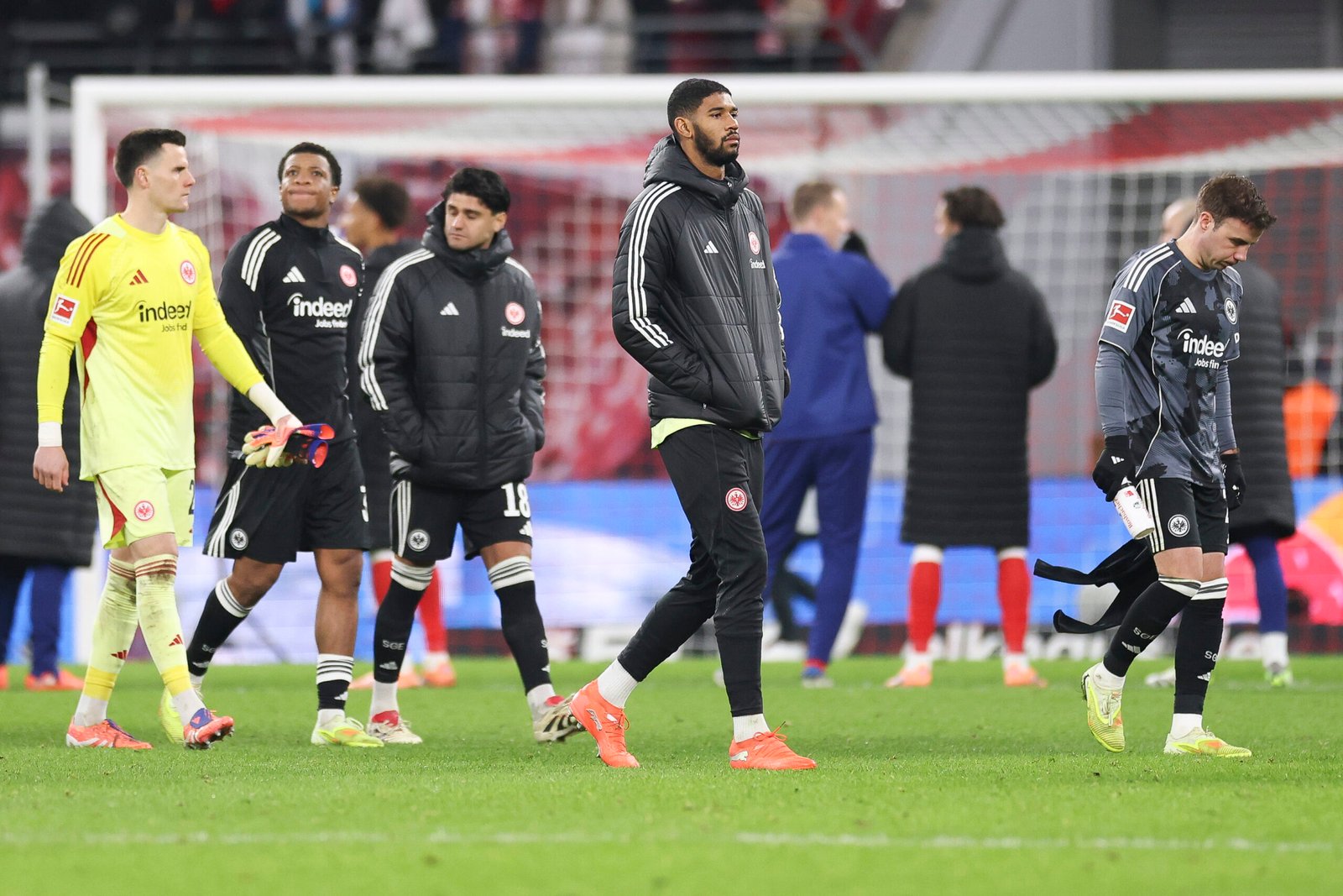 LEIPZIG, ALEMANIA – 6 DE DICIEMBRE: Los jugadores del Eintracht Frankfurt. Lucen abatidos durante el partido de la Bundesliga. Entre el RB Leipzig y el Eintracht Frankfurt. En el Red Bull Arena el 6 de diciembre de 2025 en Leipzig, Alemania. (Foto de Maja Hitij/Getty Images.)