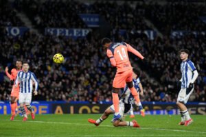 Mikel Oyarzabal anotó el primer gol para el conjunto txuri-urdin en el 32′, superando una tibia marca de Jules Koundé. Aunque al 70′ Rashford empató a pase de Lamine Yamal, la respuesta de los de Matarazzo no tardó. Al 71′ Guedes marcó la última anotación del encuentro, sentenciando así la victoria para la Real Sociedad ante el FC Barcelona.