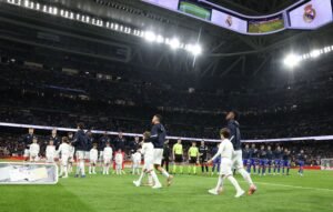 Los jugadores saltando al campo del Santiago Bernabéu. Fuente: Florencia Tan Jun