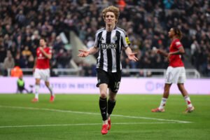 Newcastle (4-3-3): Ramsdale; Trippier, Thiaw, Dan Burn, Lewis Hall; Ramsey, Tonali, Joelinton; Barnes (Willock 46′), Gordon, Elanga